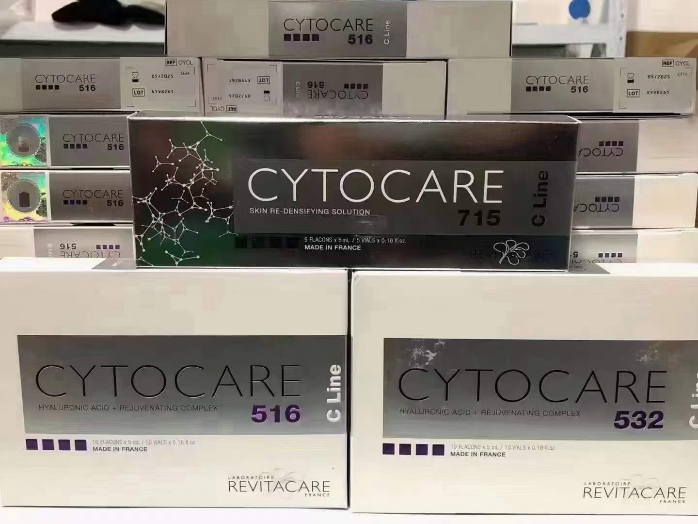 | 商品应用: cytocare715 502,516,532 法国CytoCare系列动能素,比filorga菲洛嘉更加专注于面部注射,抗氧化,提拉,紧致,针对不同年龄段都有对应型号,502适合35岁以下,516适合35-45岁,532适合 45-60岁,502/516/532仅玻尿酸浓度不相同,但都含有独家专利 |